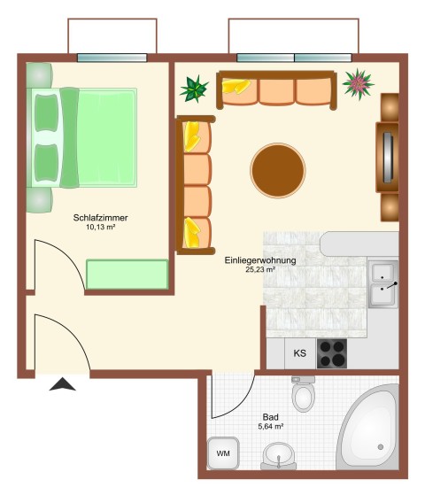 In einer sehr ruhigen Lage am Ortsrand von Baiertal gelegen, befindet sich diese Zwei-Zimmer-Wohnung im Souterrain.